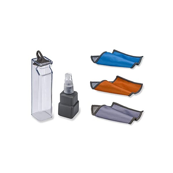 kit de nettoyage compact et léger, idéal pour lentilles, jumelles, lunettes et autres optiques sensibles.