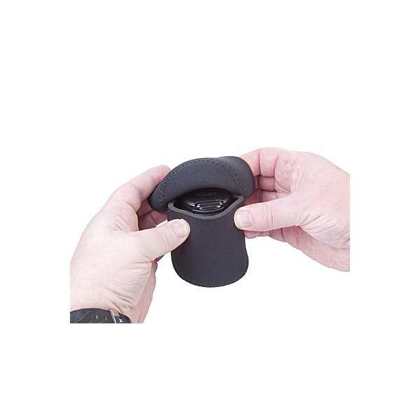 Etui en néoprène pour protéger vos objectifs, convertisseurs, adaptateurs ou autre, avec système de fermeture rabattable qui reste attachée au corps principal.