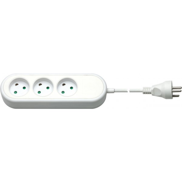 Bloc multiprise 3 prises Danemark, 1,5 m, blanc