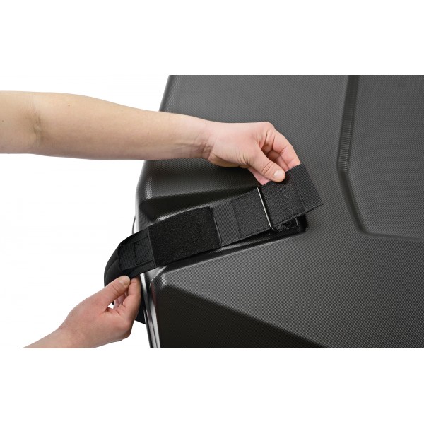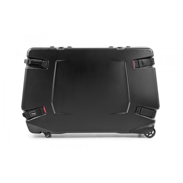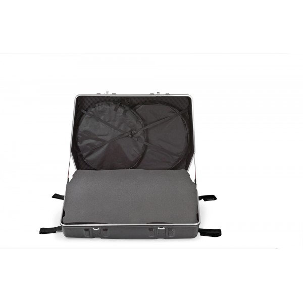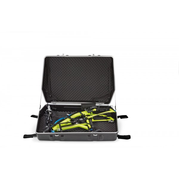La bike.case 2.0 dispose d'aménagements intérieurs complets qui accueille solidement chaque pièce du vélo et est facile à manœuvrer grâce à ses quatre roues à roulement doux.