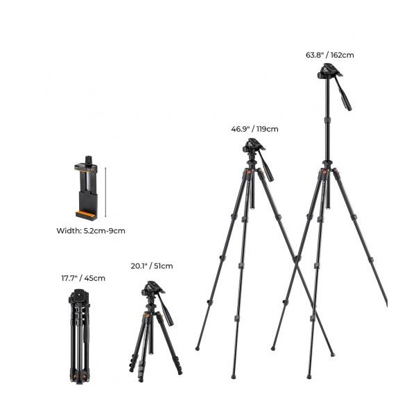 La vis 1/4" à dégagement rapide convient à la plupart des appareils photo, appareils photo reflex numériques, etc.