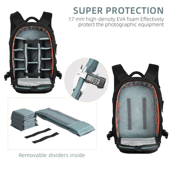 Système de diviseurs multi-sections réglables en velcro qui permet de nombreuses configurations. Les sangles de taille et de dos, et la maille respirante haute qualité permet une bonne dissipation de la chaleur et un effet de ventilation.