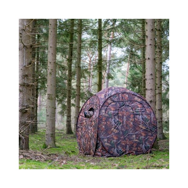 La toile de la tente est bien camouflée à l'extérieur et recouverte de noir à l'intérieur pour une obscurité maximale.