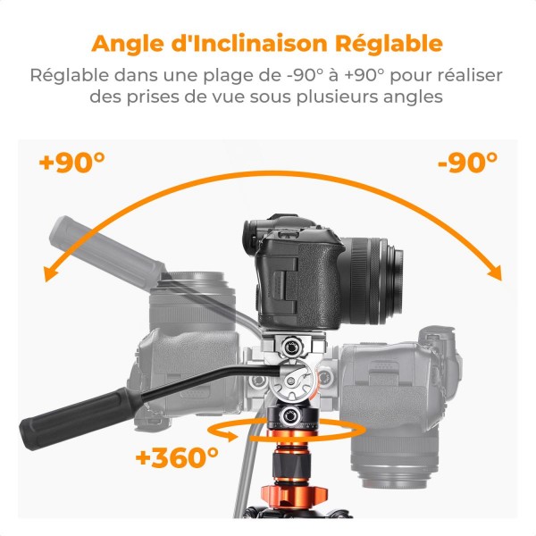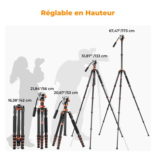 Le trepied est equipé d'une tête hydraulique munie d'une poignée. Elle utilise une technologie d'amortissement hydraulique avec un réglage en douceur, offrant des effets de prise de vue stables et fluides.